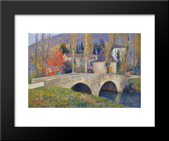 The Bridge In Labastide Du Vert In Autumn 20x24 Black Modern Wood Framed Art Print Poster by Martin, Henri