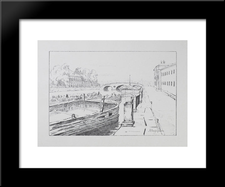 Fontanka Near The Summer Garden 20x24 Black Modern Wood Framed Art Print Poster by Ostroumova Lebedeva, Anna