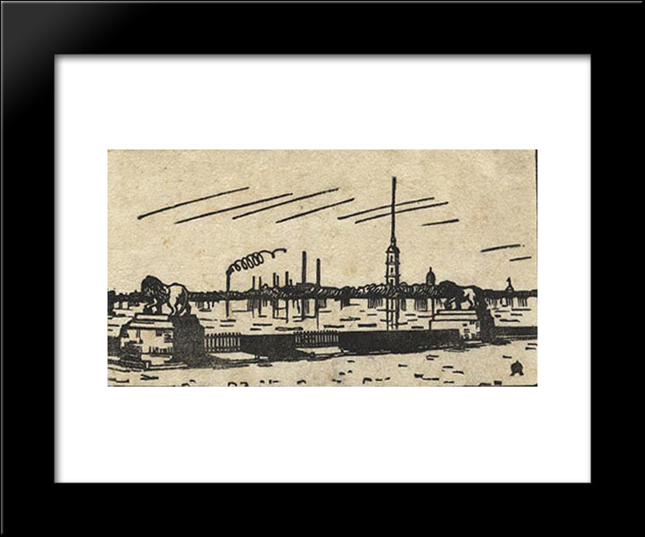 Lions And Castle (Ice Drifts And Fortress) 20x24 Black Modern Wood Framed Art Print Poster by Ostroumova Lebedeva, Anna