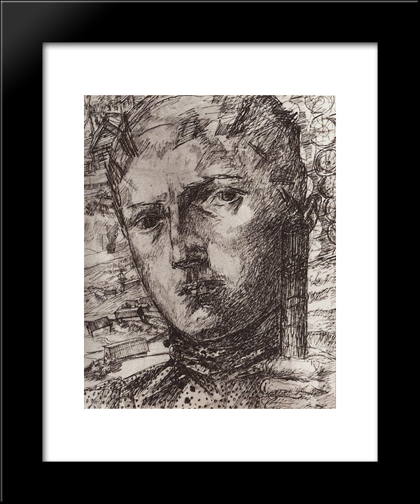 Head Boys Against The Backdrop Of The Rural Landscape 20x24 Black Modern Wood Framed Art Print Poster by Petrov Vodkin, Kuzma