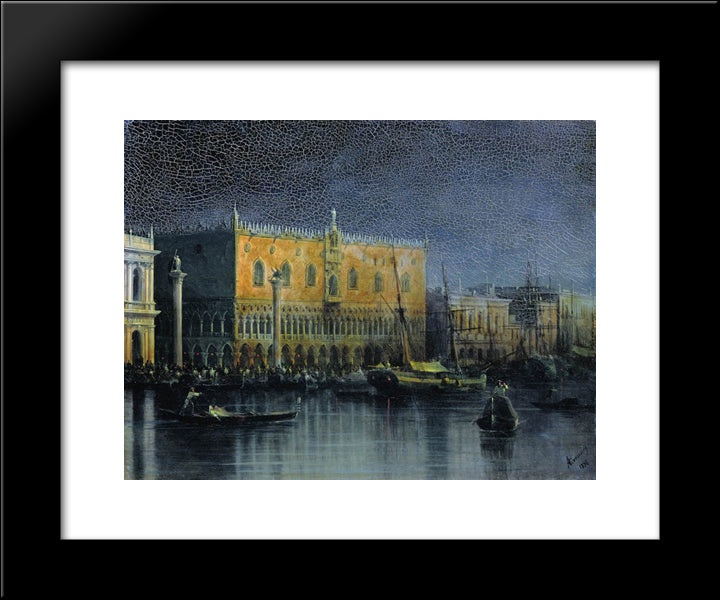 Palace Rains In Venice By Moonlight 20x24 Black Modern Wood Framed Art Print Poster by Aivazovsky, Ivan