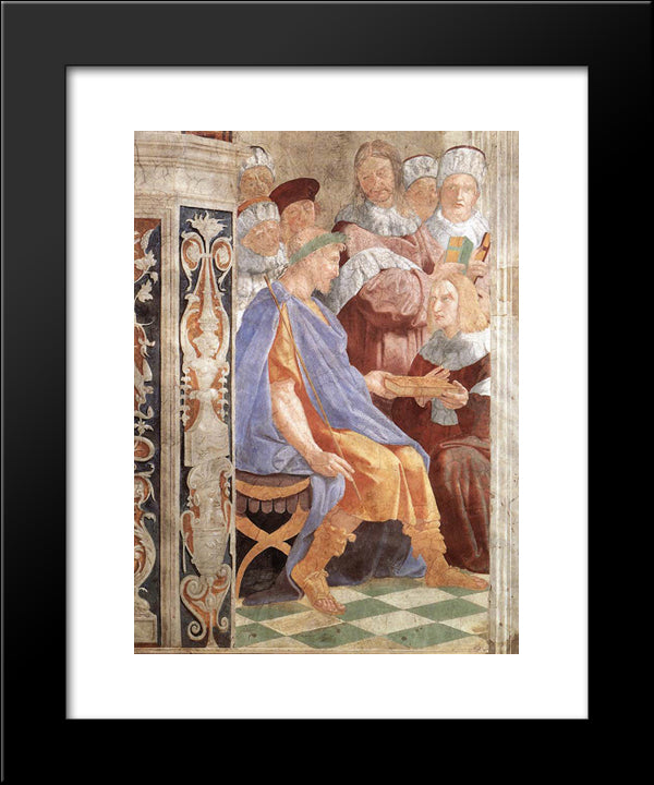The Judicial Virtues: Pope Gregory Ix Approving The Vatical Decretals; Justinian Handing The Pandects To Trebonianus (Detail) 20x24 Black Modern Wood Framed Art Print Poster by Raphael