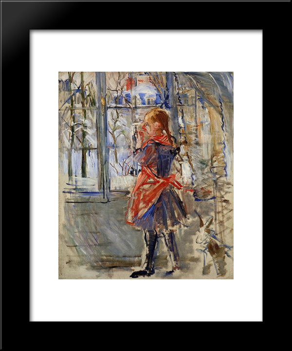 Child With A Red Apron 20x24 Black Modern Wood Framed Art Print Poster by Morisot, Berthe