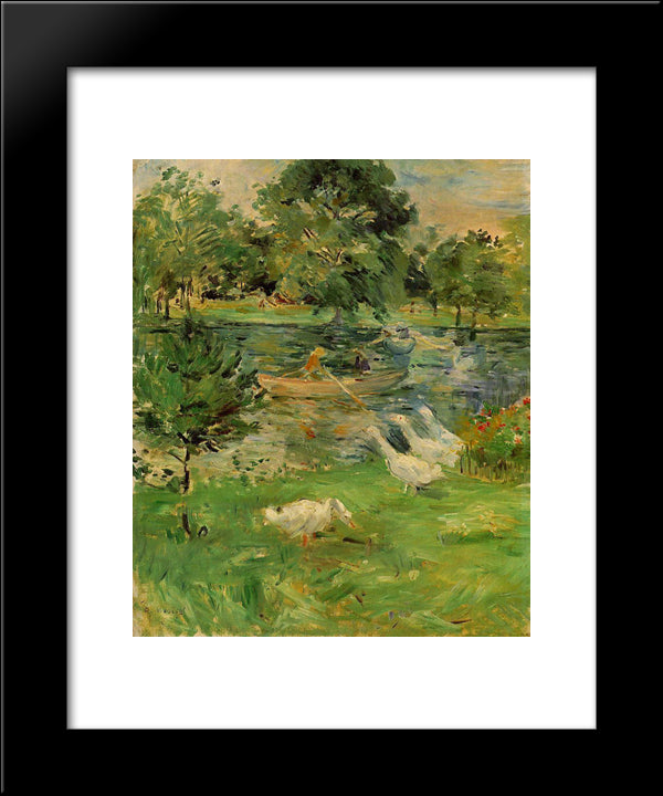 Girl In A Boat, With Geese 20x24 Black Modern Wood Framed Art Print Poster by Morisot, Berthe