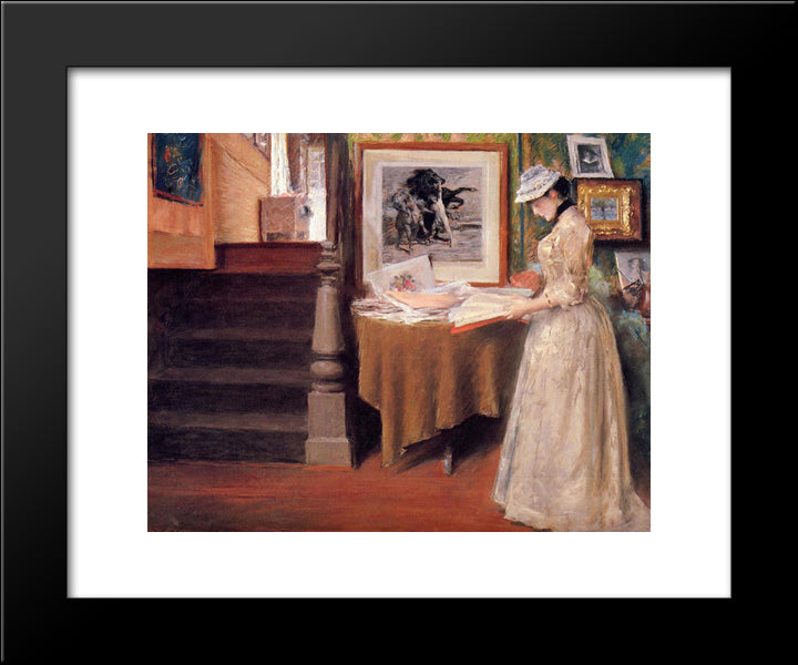 Interior, Young Woman At A Table 20x24 Black Modern Wood Framed Art Print Poster by Chase, William Merritt
