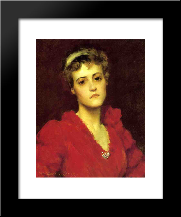 The Red Gown 20x24 Black Modern Wood Framed Art Print Poster by Chase, William Merritt