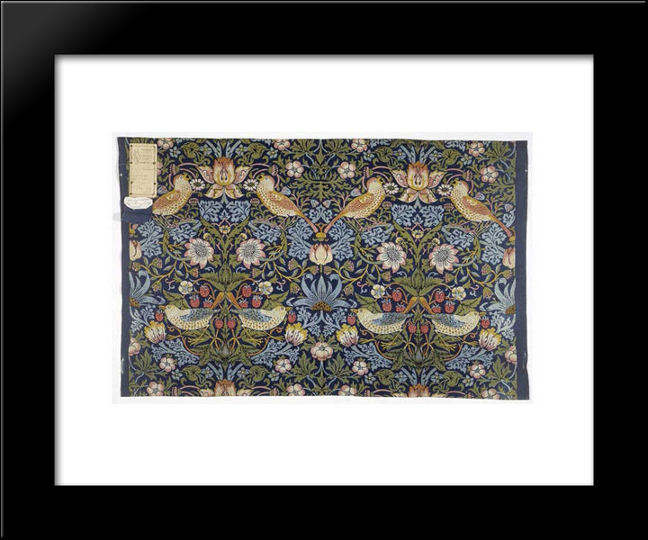 Strawberry Thief, Furnishing Fabric 20x24 Black Modern Wood Framed Art Print Poster by Morris, William