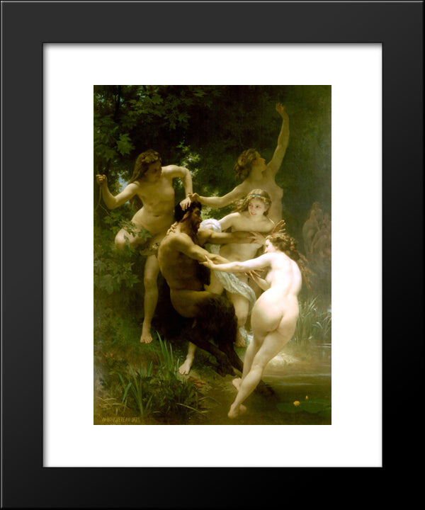 Nymphs And Satyr 20x24 Black Modern Wood Framed Art Print Poster by Bouguereau, William Adolphe