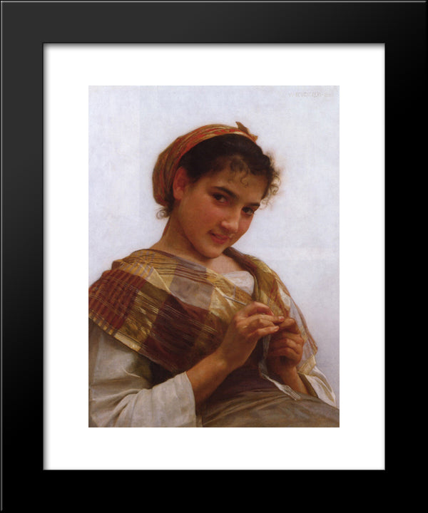 Portrait Of A Young Girl Crocheting 20x24 Black Modern Wood Framed Art Print Poster by Bouguereau, William Adolphe