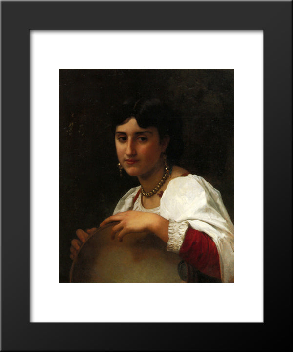The Italian Tambourine 20x24 Black Modern Wood Framed Art Print Poster by Bouguereau, William Adolphe
