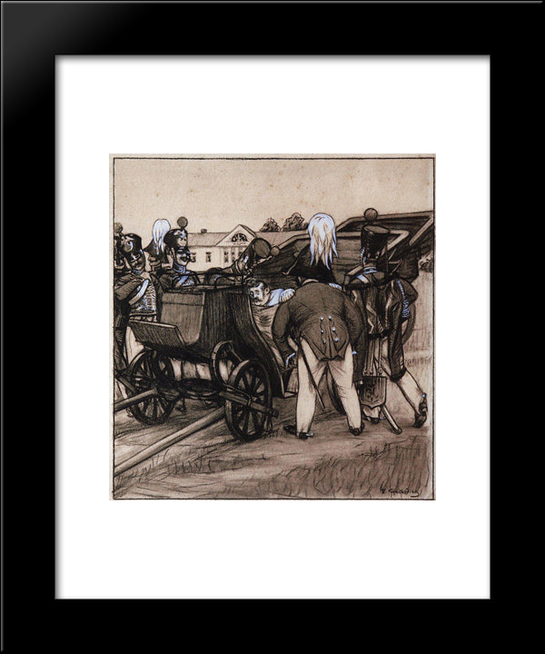 Officers Near The Carriage 20x24 Black Modern Wood Framed Art Print Poster by Kustodiev, Boris