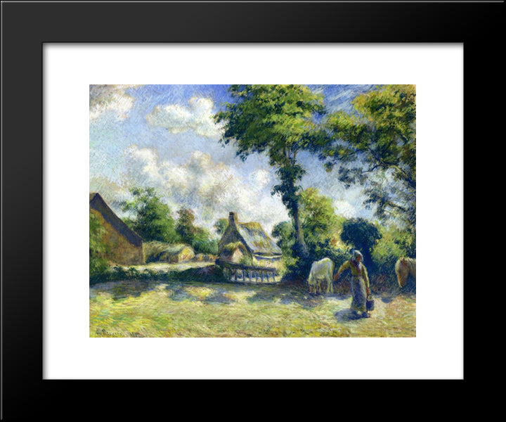 Landscape At Melleray, Woman Carrying Water To Horses 20x24 Black Modern Wood Framed Art Print Poster by Pissarro, Camille