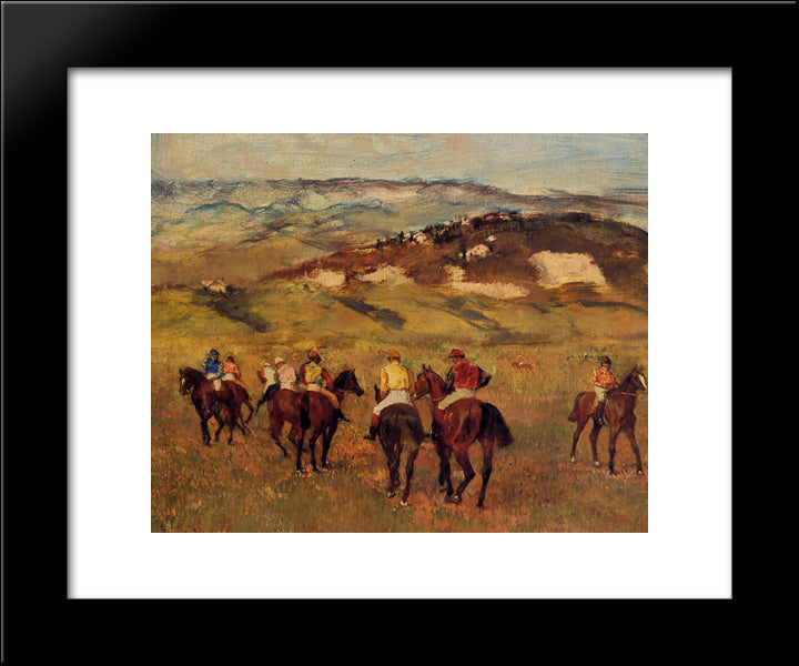 Racehorses 20x24 Black Modern Wood Framed Art Print Poster by Degas, Edgar