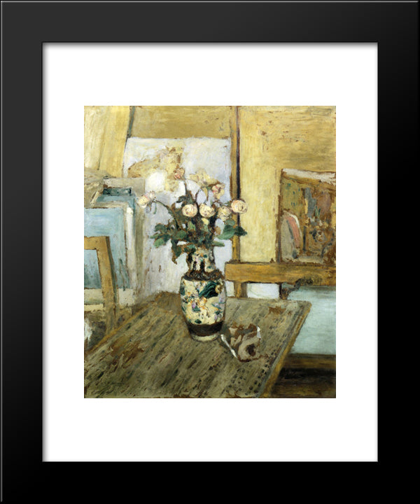 Vase Of Flowers 20x24 Black Modern Wood Framed Art Print Poster by Vuillard, Edouard