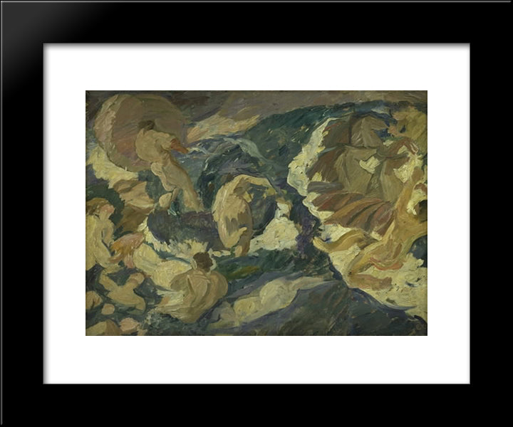 Poseidon Farer Over Havet Omgivet Af Nereider Og Tritoner 20x24 Black Modern Wood Framed Art Print Poster by Weie, Edvard