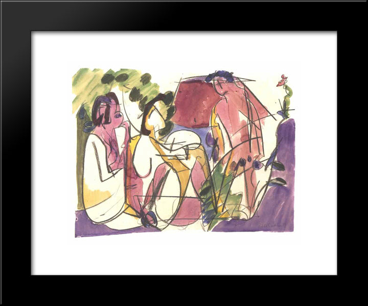 Two Seated Woman And A Striding Man 20x24 Black Modern Wood Framed Art Print Poster by Kirchner, Ernst Ludwig