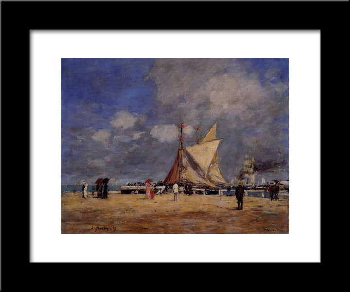 Deauville, On The Jetty 20x24 Black Modern Wood Framed Art Print Poster by Boudin, Eugene