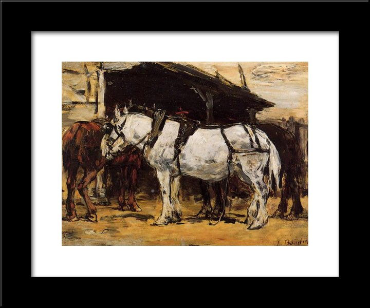 Harnessed Horses 20x24 Black Modern Wood Framed Art Print Poster by Boudin, Eugene