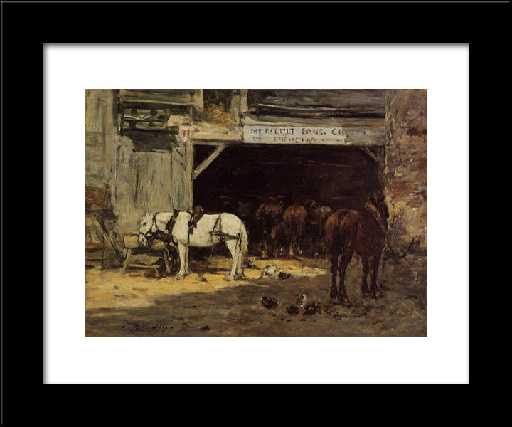 Horses For Hire In A Yard 20x24 Black Modern Wood Framed Art Print Poster by Boudin, Eugene