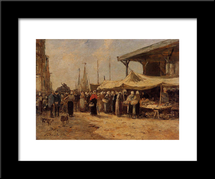 Trouville, Fish Market 20x24 Black Modern Wood Framed Art Print Poster by Boudin, Eugene
