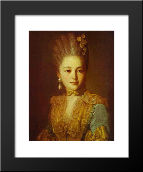 Portrait Of An Unknown Woman In A Blue Dress With Yellow Trimmings 20x24 Black Modern Wood Framed Art Print Poster by Rokotov, Fyodor