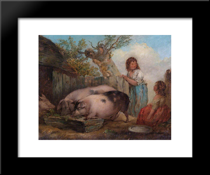 Pigs In A Farmyard 20x24 Black Modern Wood Framed Art Print Poster by Morland, George