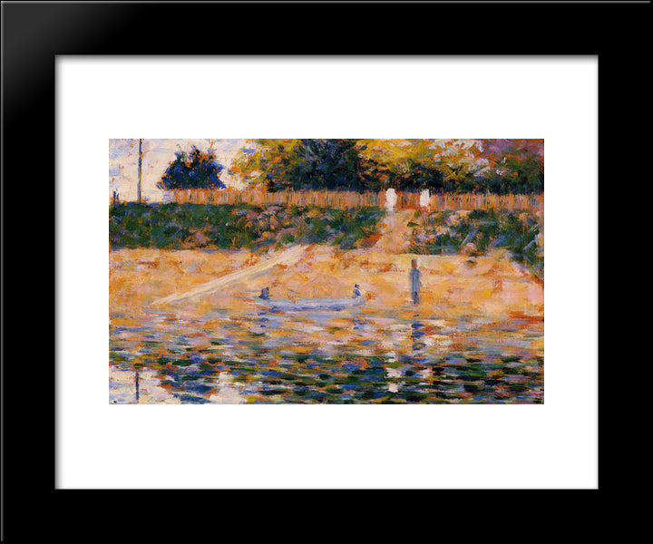 Boats Near The Beach At Asnieres 20x24 Black Modern Wood Framed Art Print Poster by Seurat, Georges