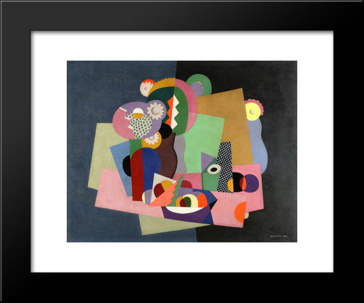 Flowers And Fruit 20x24 Black Modern Wood Framed Art Print Poster by Valmier, Georges