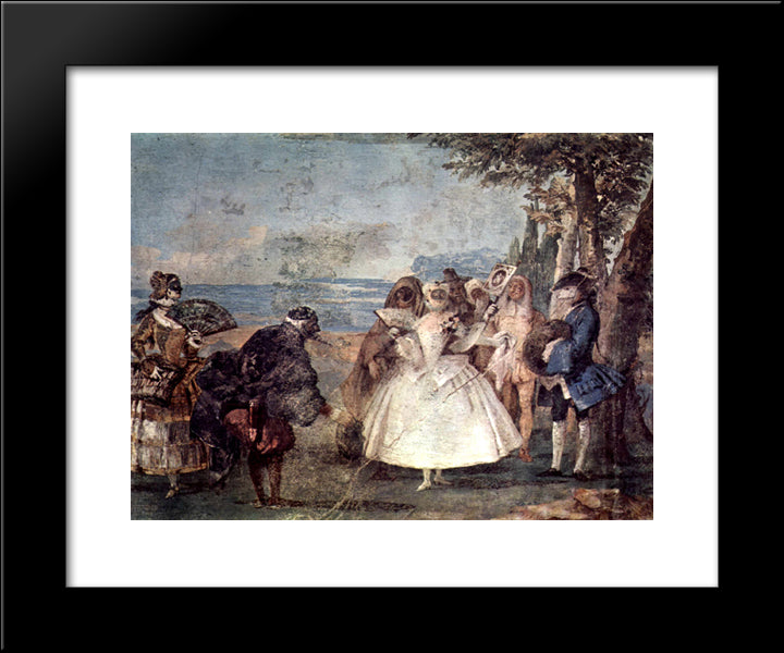 Minuet With Pantaloon And Colombine, From The Room Of Carnival Scenes In The Foresteria 20x24 Black Modern Wood Framed Art Print Poster by Tiepolo, Giovanni Domenico