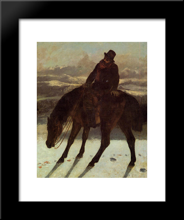 Hunter On Horseback, Redcovering The Trail 20x24 Black Modern Wood Framed Art Print Poster by Courbet, Gustave