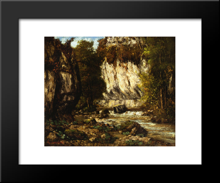 River And Cliff 20x24 Black Modern Wood Framed Art Print Poster by Courbet, Gustave