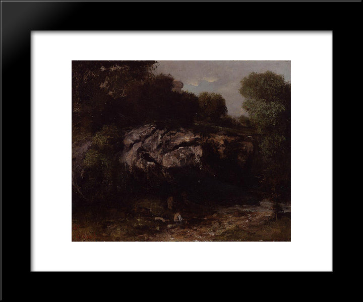 Rocky Landscape With Figure 20x24 Black Modern Wood Framed Art Print Poster by Courbet, Gustave
