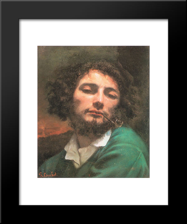 Self-Portrait (The Man With A Pipe) 20x24 Black Modern Wood Framed Art Print Poster by Courbet, Gustave