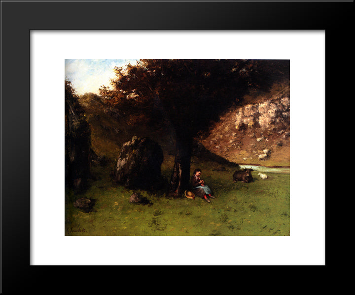 The Young Shepherdess 20x24 Black Modern Wood Framed Art Print Poster by Courbet, Gustave