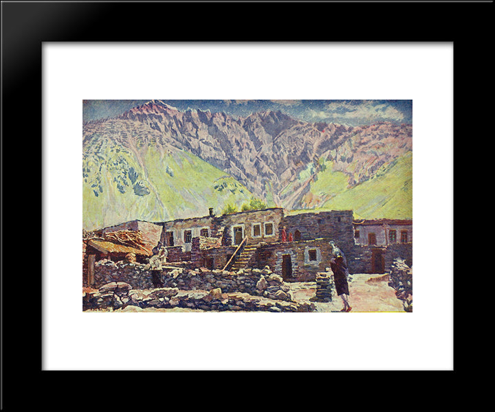 Georgia. Kazbek. Shat-Mountain And Village 20x24 Black Modern Wood Framed Art Print Poster by Mashkov, Ilya