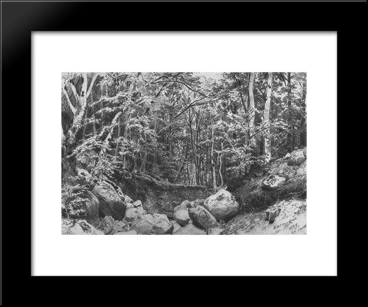 On The Mountain Castel Near Alushta 20x24 Black Modern Wood Framed Art Print Poster by Shishkin, Ivan