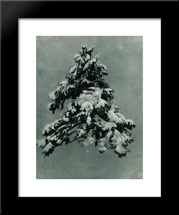 Pine In The Snow 20x24 Black Modern Wood Framed Art Print Poster by Shishkin, Ivan