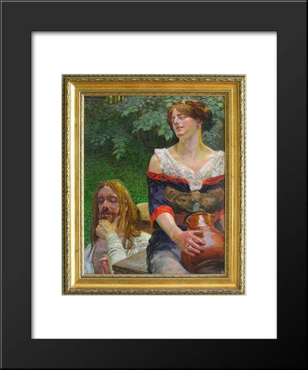 Christ And The Samaritian Woman 20x24 Black Modern Wood Framed Art Print Poster by Malczewski, Jacek
