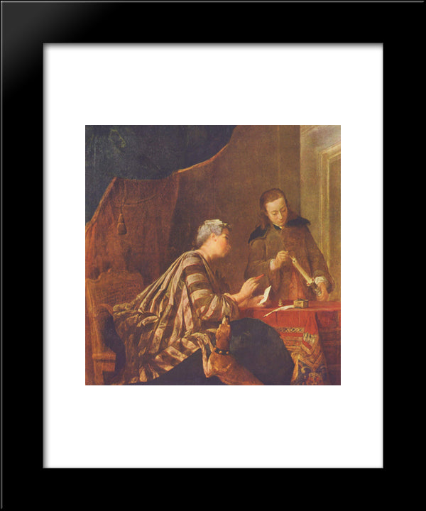 Lady Sealing A Letter 20x24 Black Modern Wood Framed Art Print Poster by Chardin, Jean Baptiste Simeon