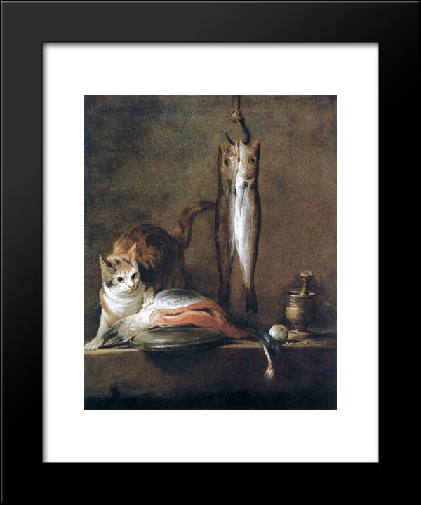 Still Life With Cat And Fish 20x24 Black Modern Wood Framed Art Print Poster by Chardin, Jean Baptiste Simeon