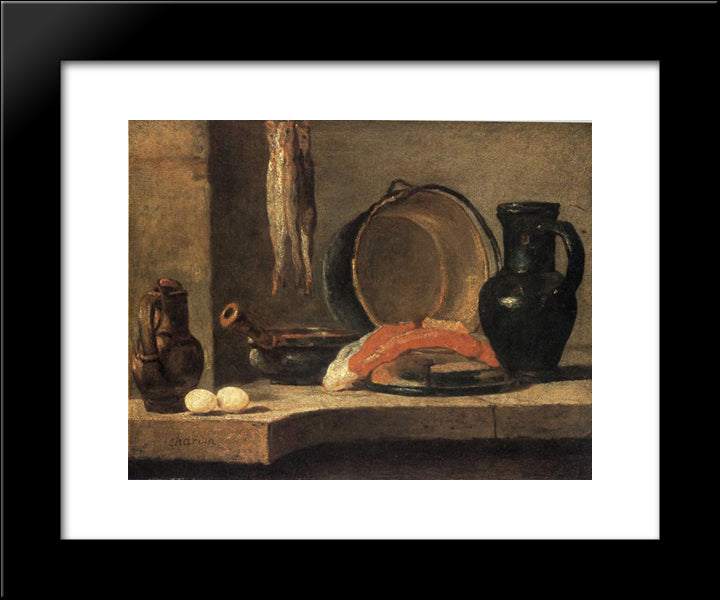 Still Life With Herrings 20x24 Black Modern Wood Framed Art Print Poster by Chardin, Jean Baptiste Simeon