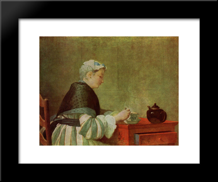 The Tea Drinker 20x24 Black Modern Wood Framed Art Print Poster by Chardin, Jean Baptiste Simeon