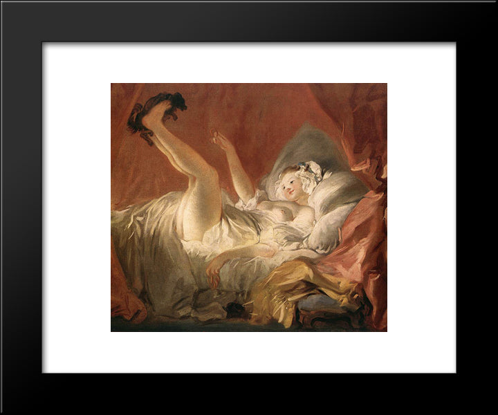 Young Woman Playing With A Dog 20x24 Black Modern Wood Framed Art Print Poster by Fragonard, Jean Honore