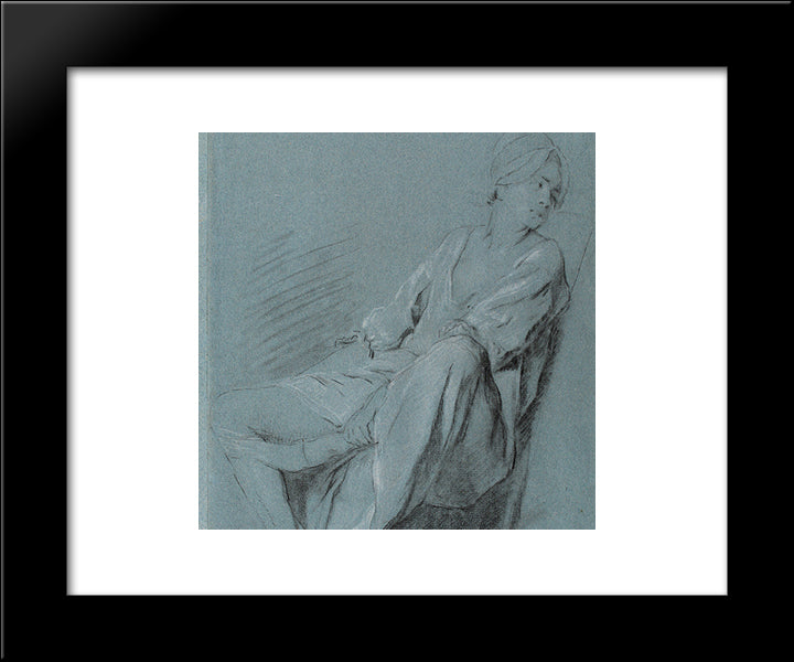 Sitzende Junge Frau Im Hemd 20x24 Black Modern Wood Framed Art Print Poster by Peters, Johann Anton de
