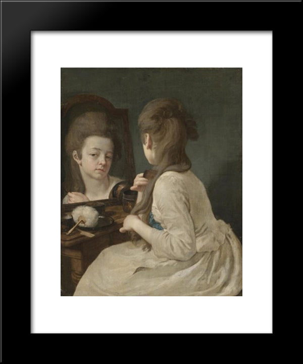 Young Lady At Her Toilet Combing Her Hair 20x24 Black Modern Wood Framed Art Print Poster by Peters, Johann Anton de