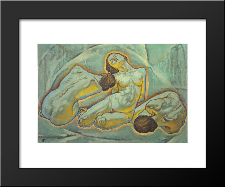 Three Women Squatting 20x24 Black Modern Wood Framed Art Print Poster by Moser, Koloman