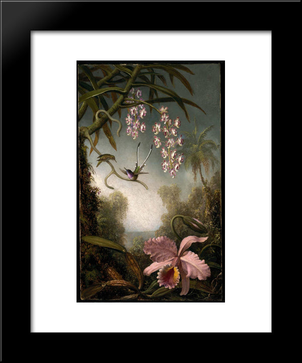 Orchids And Spray Orchids With Hummingbird 20x24 Black Modern Wood Framed Art Print Poster by Heade, Martin Johnson