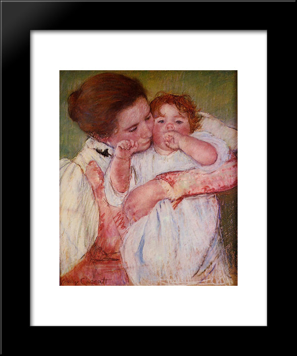 Little Ann Sucking Her Finger Embraced By Her Mother 20x24 Black Modern Wood Framed Art Print Poster by Cassatt, Mary