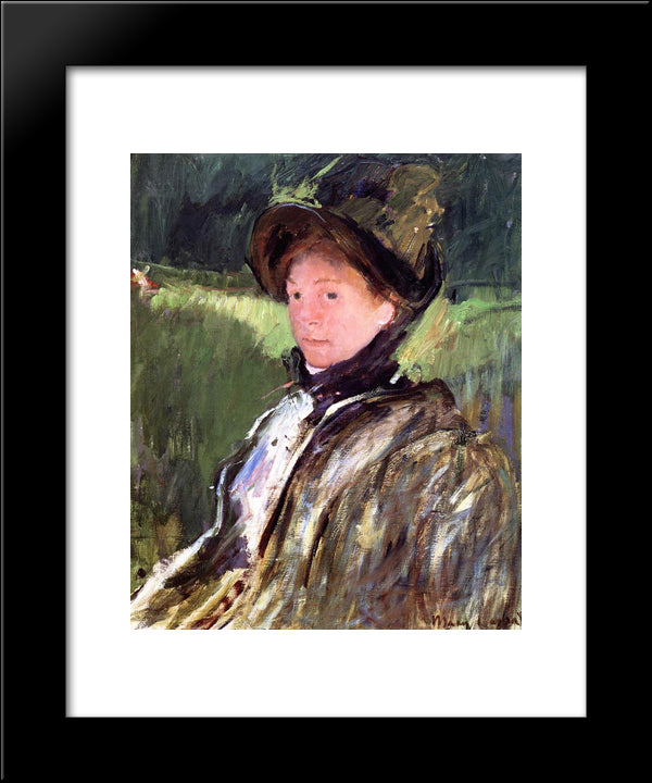 Lydia Cassatt In A Green Bonnet And A Coat 20x24 Black Modern Wood Framed Art Print Poster by Cassatt, Mary