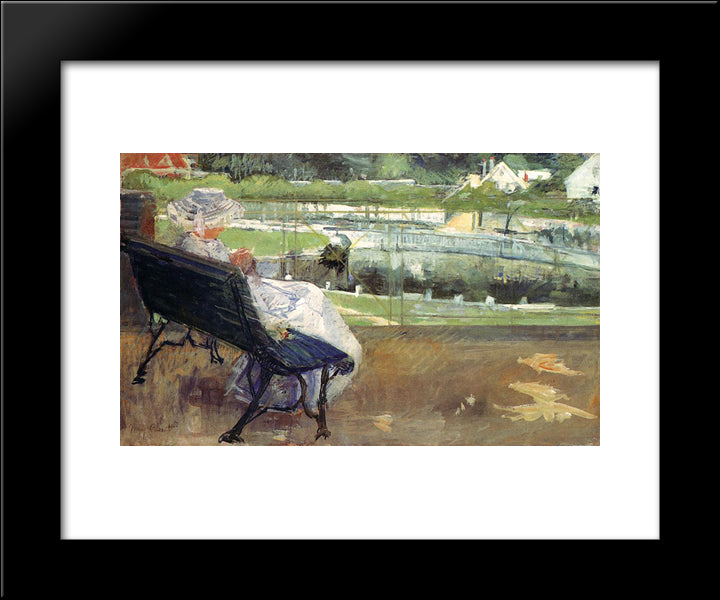 Lydia Sitting On A Porch, Crocheting 20x24 Black Modern Wood Framed Art Print Poster by Cassatt, Mary